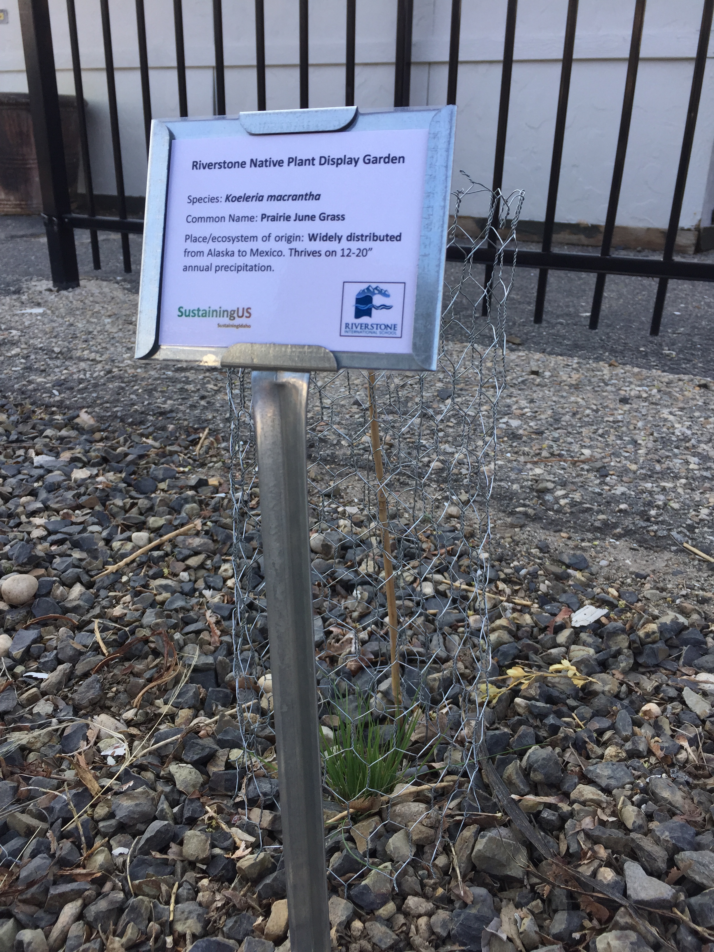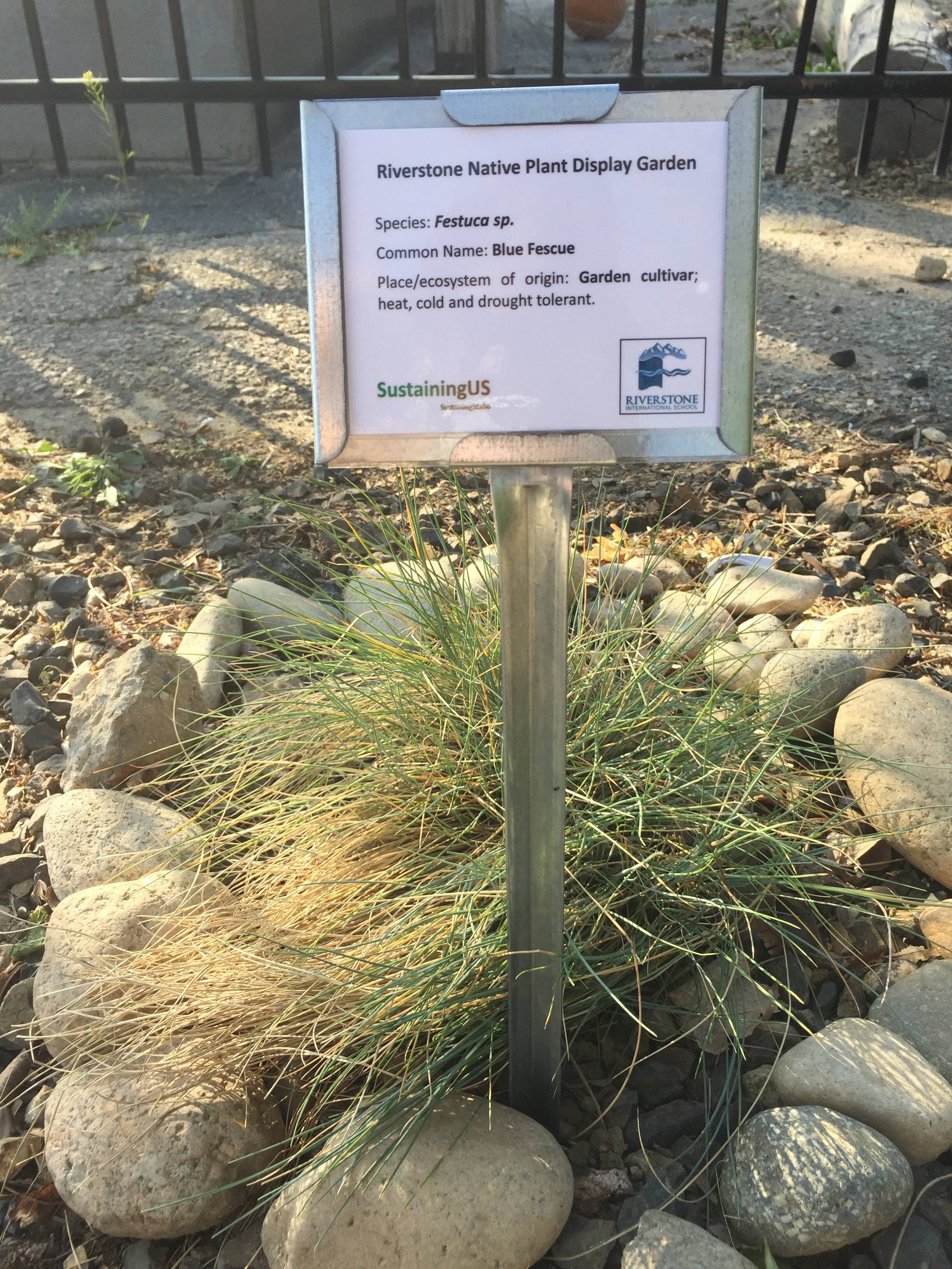 We took out the box plants, and installed native grasses: Great Basin wild rye (Leymus cinereus), Indian ricegrass (Achnatherum hymenoides), and Prairie June Grass (Koeleria macrantha) from Draggin’ Wing Farm. We also planted some salvaged Blue Fescue (Festuca sp.), which is a cultivar and not really a native but has great drought tolerance and helped fill the planting area nicely. These plants (with the exception of the fescue) are all native to the Great Basin ecotone, the plant community native to the Boise region. They will thrive with little water or maintenance and will increase the habitat value on the school grounds. Once I create and install the signs for our native plant demonstration garden, parents, students and visitors can learn about the importance of native plants which will raise awareness about water use in our landscapes. I will update this blog with more content and pictures as soon as I get the interpretative signs approved and installed!