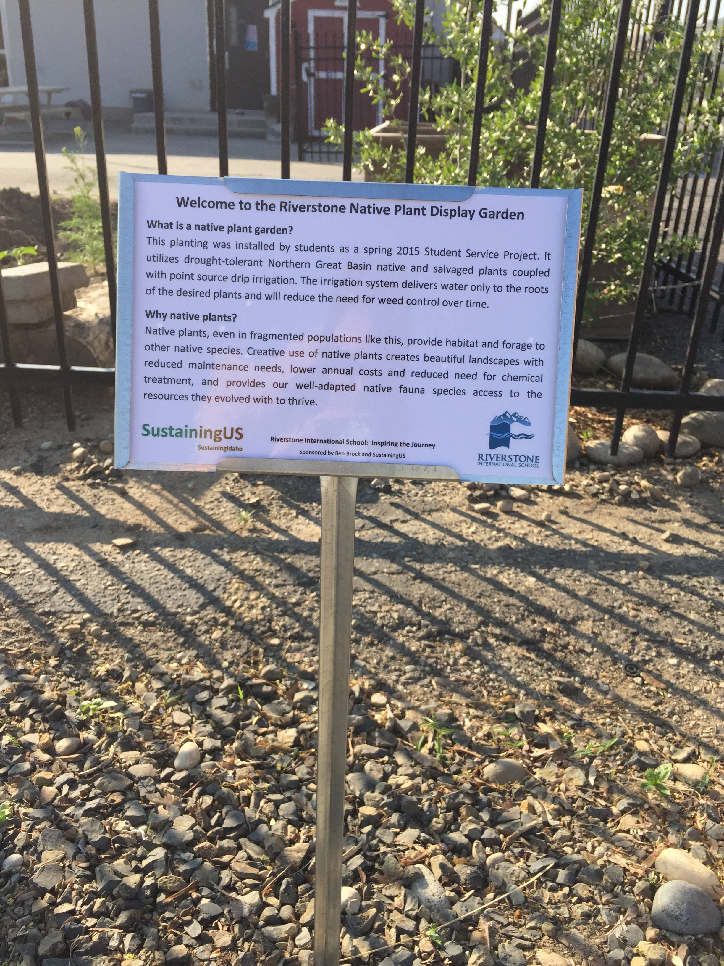 It was also awesome to see how so many people and organizations can come together to do something cool. A big thanks to: Riverstone International School (for providing the space and having the great idea to do service projects during parent-teacher conferences); Ben Brock (for brainstorming, sponsoring the project and salvaging his Blue Fescue); City of Boise (for donating 3-yards of arborist chips); SustainingUs (for also sponsoring the project and providing the rest of the grasses); and of course the middle and high school Riverstone students for their hard work!