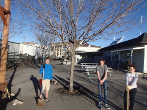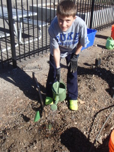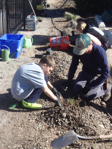 The students had a great time working together on projects that benefit one of their most personal communities, and learned about native plants, using sledgehammers, watering-in new plants (using rooftop collected rain water!) and the benefits of organic and inorganic mulch.