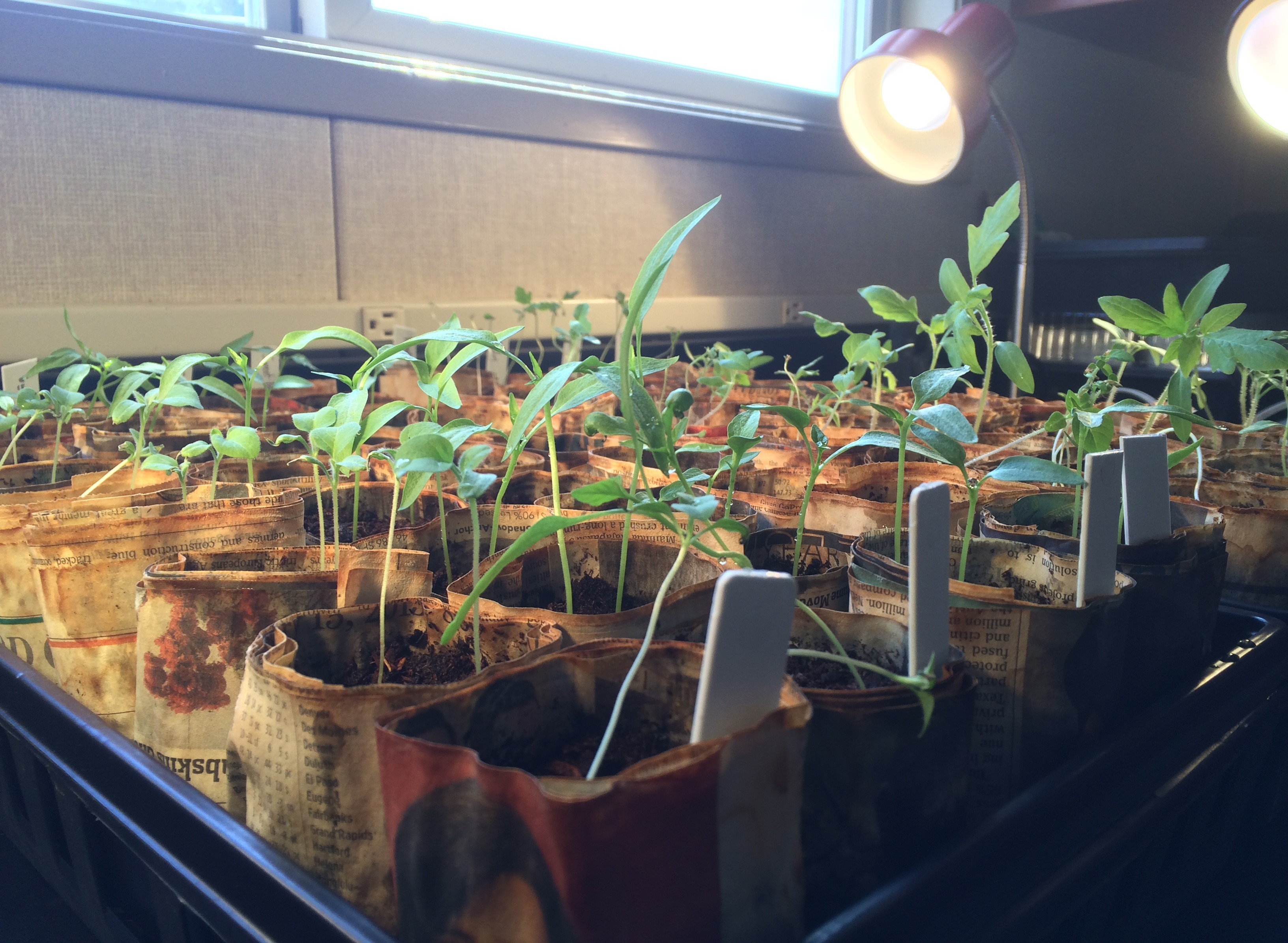 For the first activity, we designed a planting system using recycled paper to make pots (see Paper Planting Pot Tutorial) and divided the class and let them plant the starts for the school garden this summer.