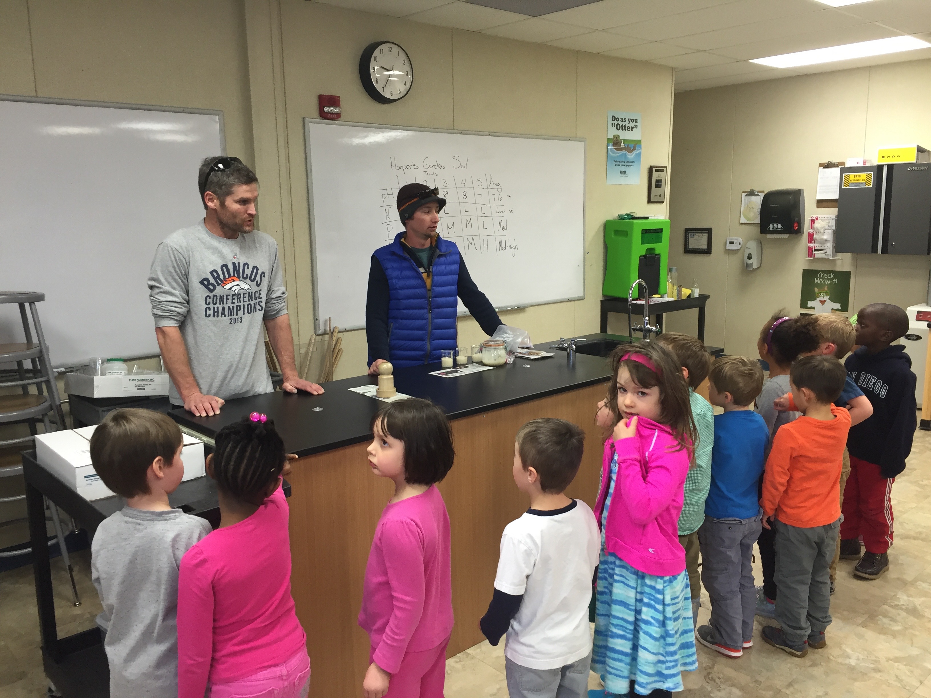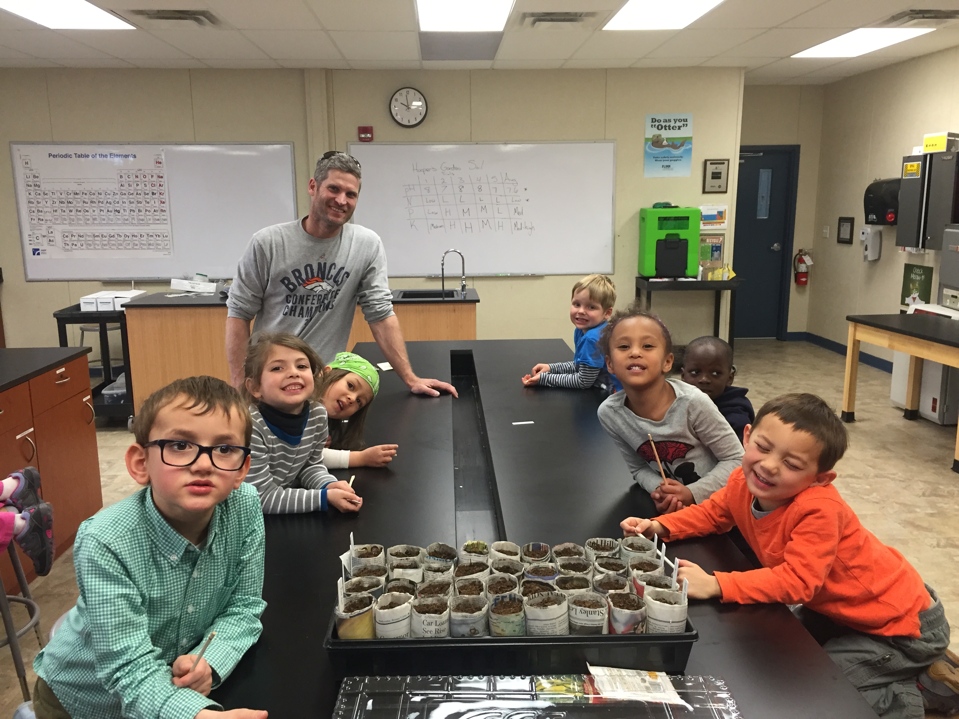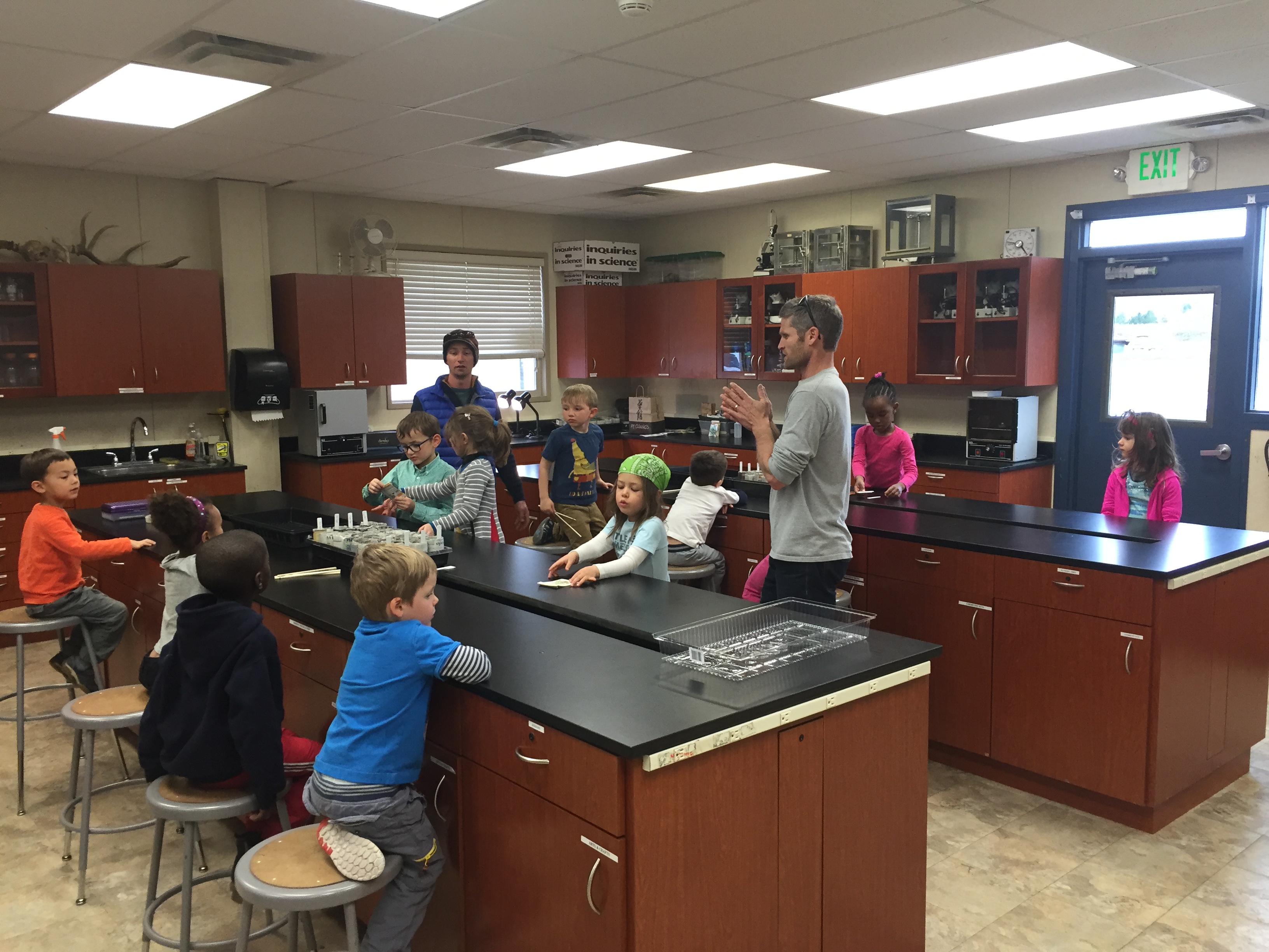 Ben Brock and I invited the Riverstone Pre-K class into the middle school science lab to participate in two activities to explore the wonder of germinating seeds.