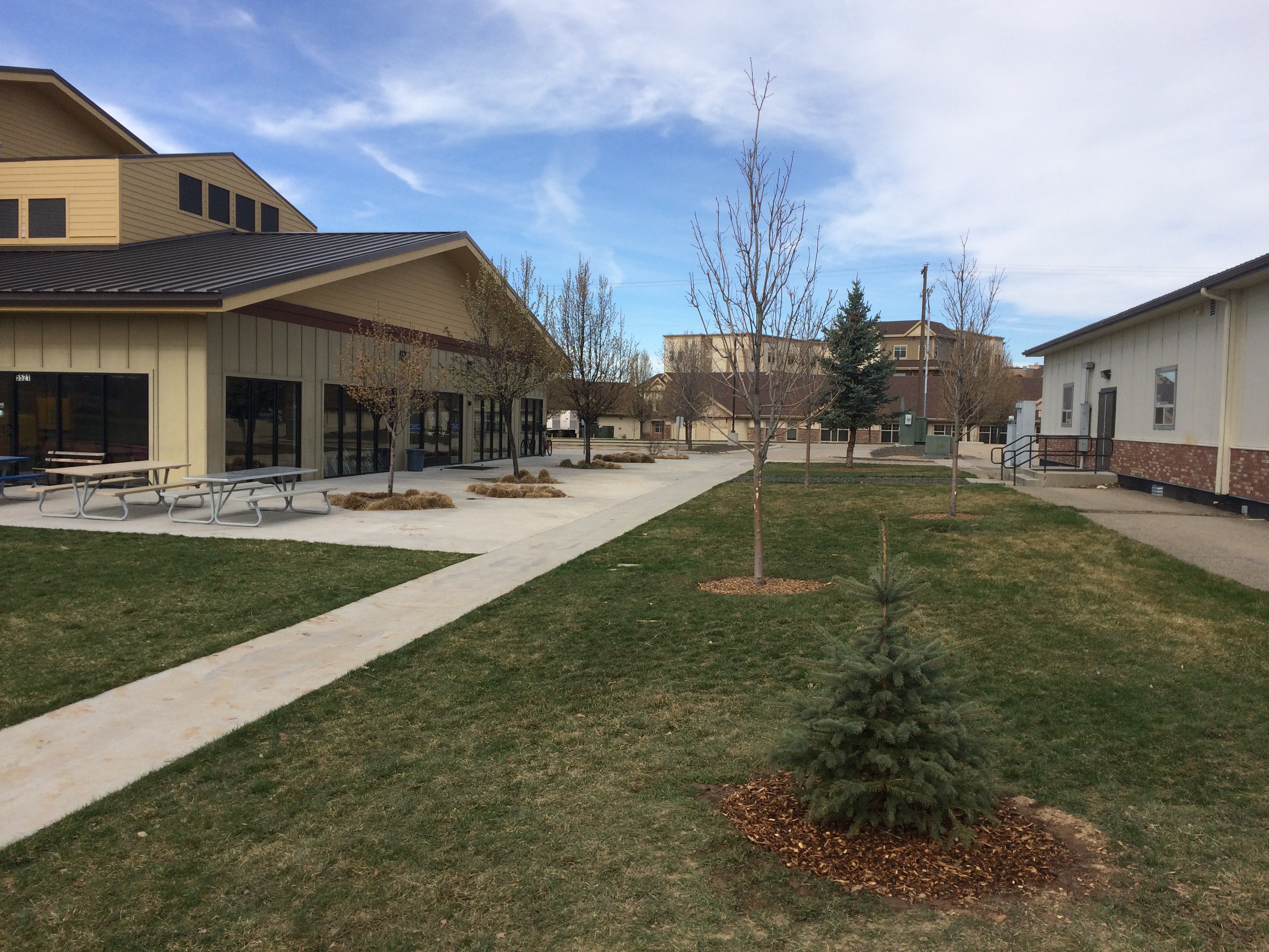 For one project we maintained the existing plantings in front of the the Gym. We trimmed the grasses, pruned out issues with trees, and edged tree wells into the turf and filled them with wood mulch- these will be much happier and healthier landscapes with just a little bit of maintenance!