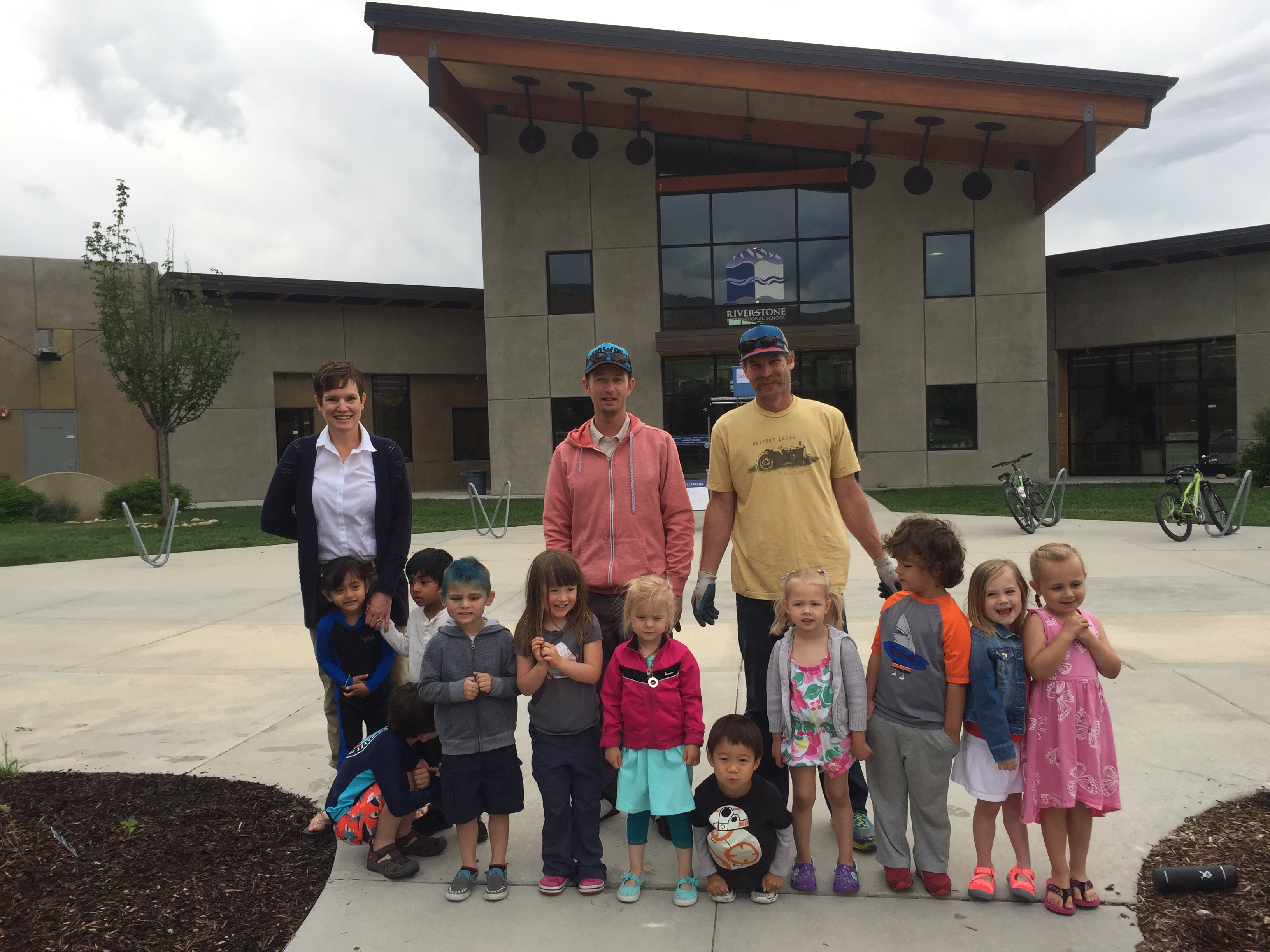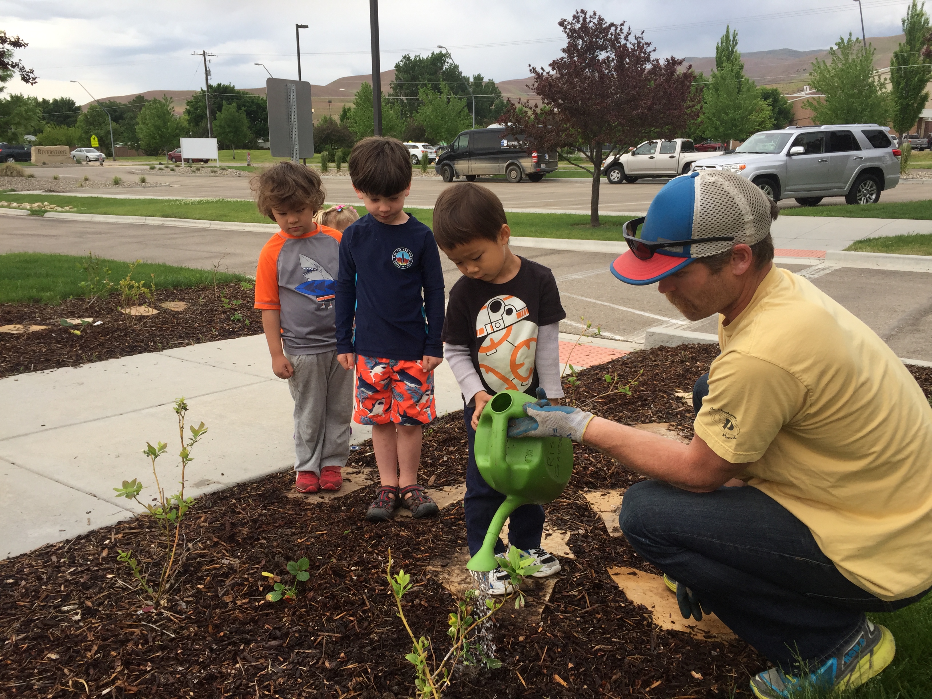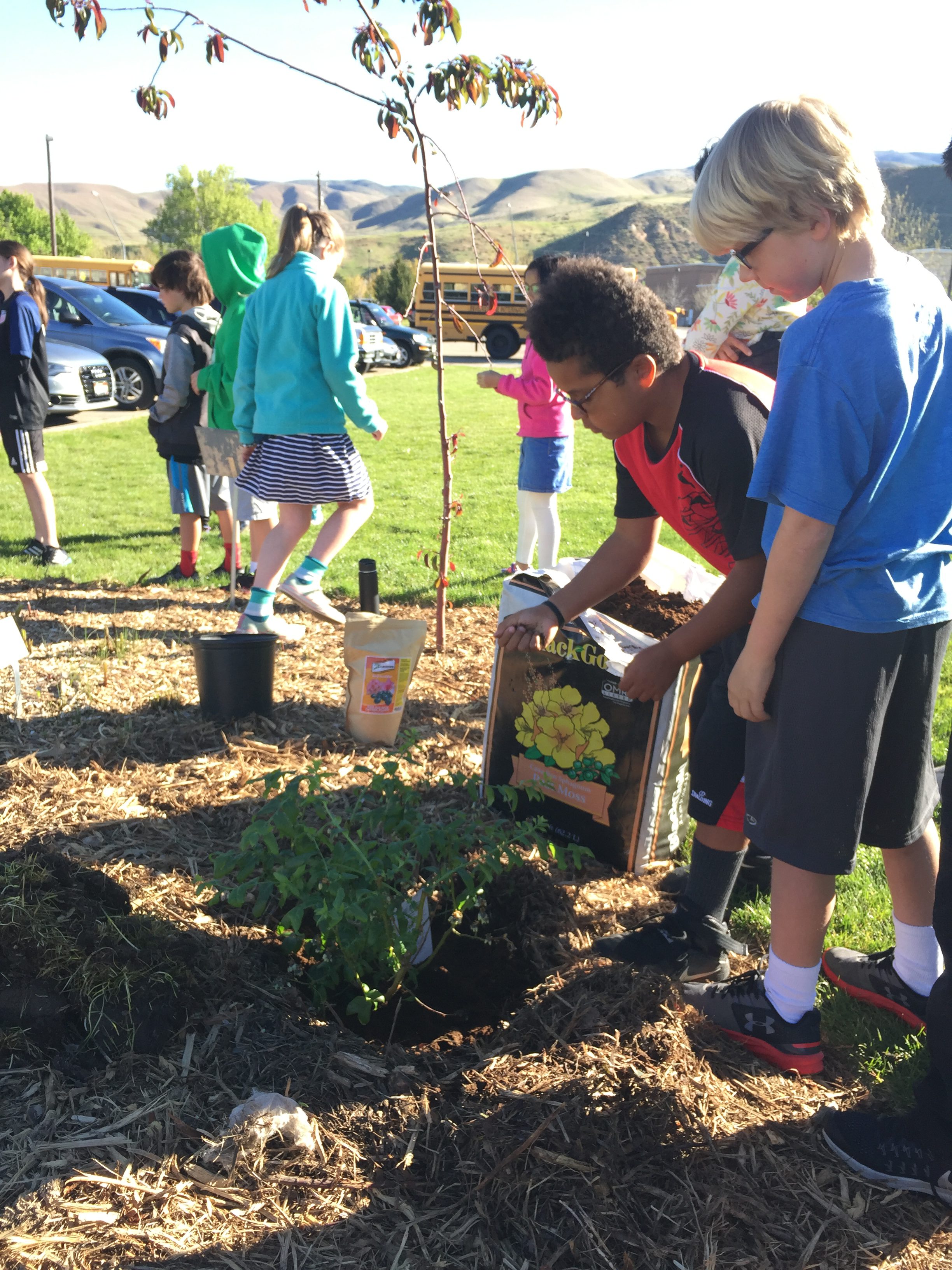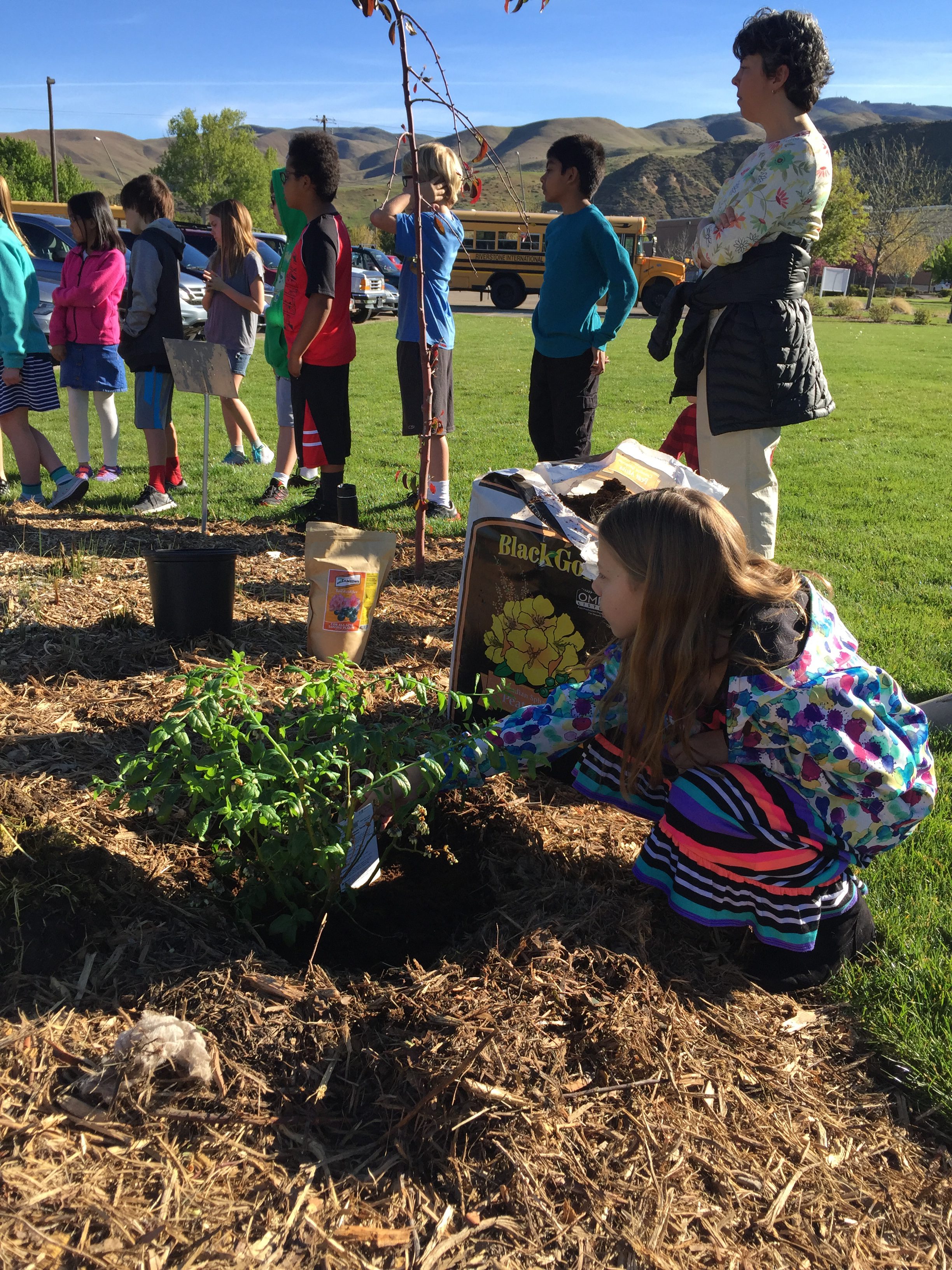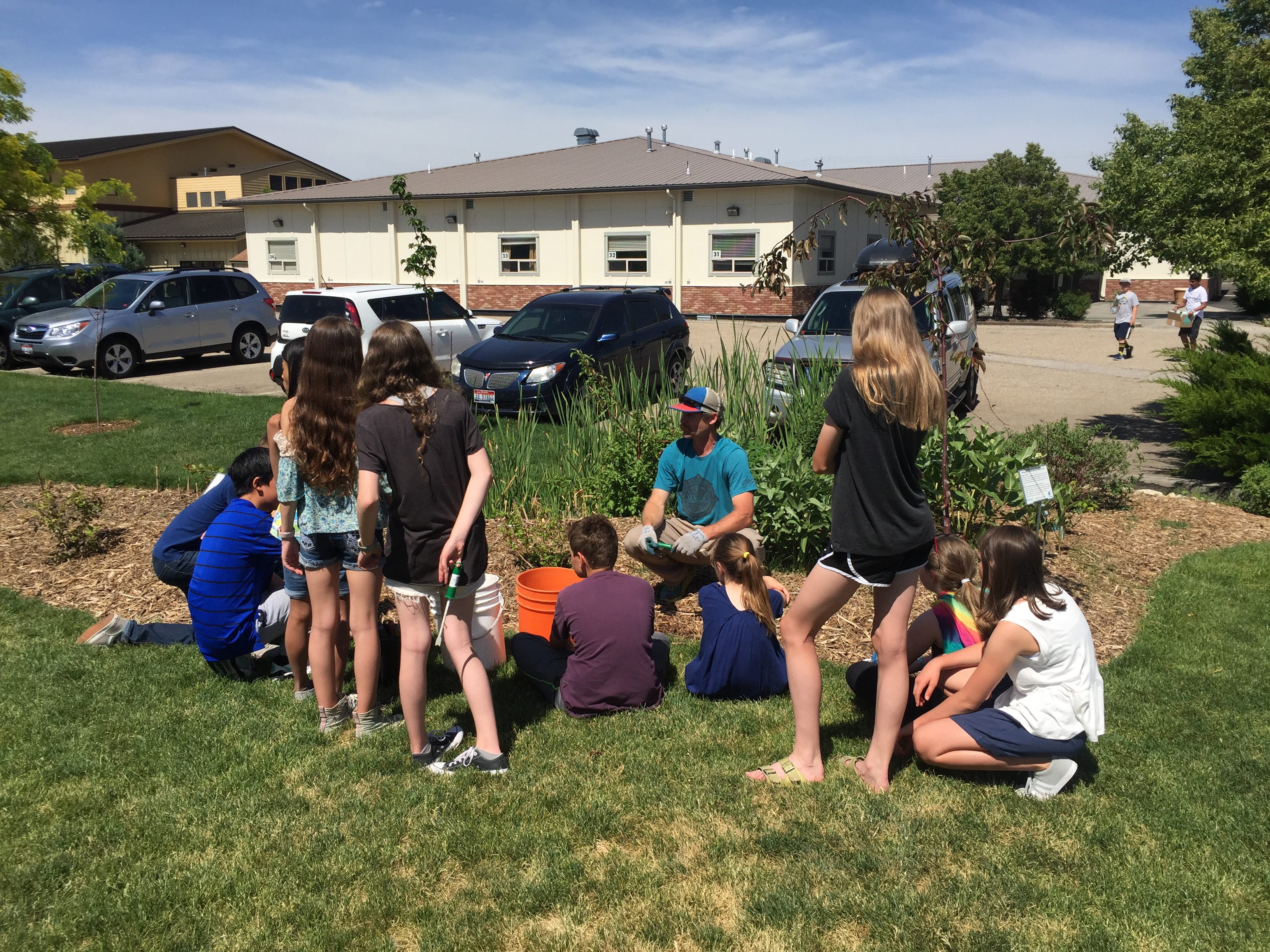 Once the weather was nice enough to head outside, each class got to go to the Pollinator Garden and Bioswale with Blake and Ben to plant their fostered blueberry bush and wish it luck providing food for us and food for nature! We explained that the deer would probably browse on the branches in the winter and the birds might compete with us for the berries, but that providing those food sources in the wildland-urban interface for the birds and bees means that Riverstone has that much less of an impact on the habitat it displaces and that is something we can all feel good about – even if it does mean sharing some of our prized (potential) blueberry harvest.