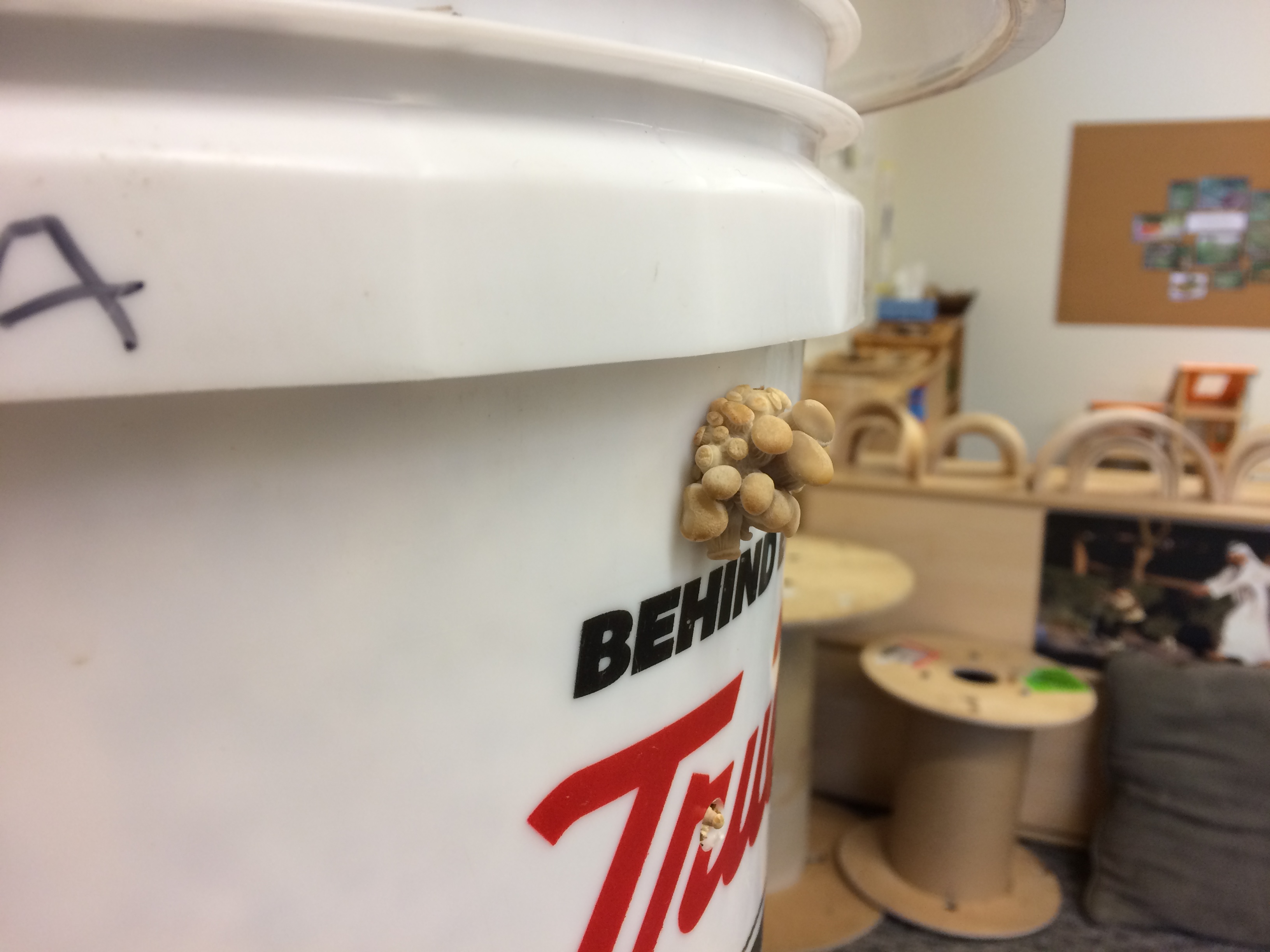 I love the magic and mystery of mushrooms. I love even more being able to unlock some of the secrets of mushrooms and make that magic come alive in the classroom! Last spring, we grew oyster mushrooms with the pre-K using recycled paper and cardboard from their classroom. The students watered and cared for the buckets while the mushrooms developed, then the class feasted on their harvest! This was such a yummy and successful project that we have already planned to do it again in 2018.